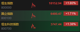 7月12日消息,港股三大指数集体上涨,截至发稿,恒生指数涨1.8%,报18152.94点,恒生科指涨1.38%,国企指数涨1.71%。盘面上,科网股普涨,京东涨近5%,美团、阿里巴巴、腾讯、快手涨超2%;内房股涨幅居前,世茂集团涨近13%,万科涨超6%;香港地产股齐涨,恒基地产涨超6%;体育用品股涨势活跃,李宁涨超6%;银行股集体走强,招行一度涨超4%;铜业、海运、煤炭、半导体等板块走低。
